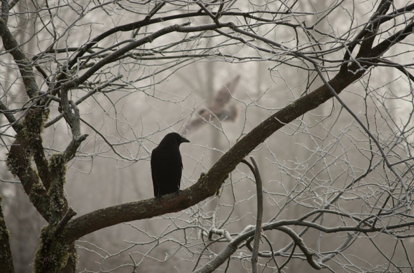 Ноябрьское тепло особого свойства. Недоверчиво-знобкое. Мглистое. В наплывах случайности и предчувствии резкого сворачивания. Тишь прошита неизменным вороньим оформлением, одинаковым на всём пространстве Евразии, от Лиссабона до Владивостока. Не всегда положительные герои фольклора удерживают пространство своей как бы немузыкальностью, напоминая – ноябрьское тепло особого свойства…