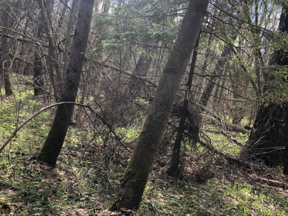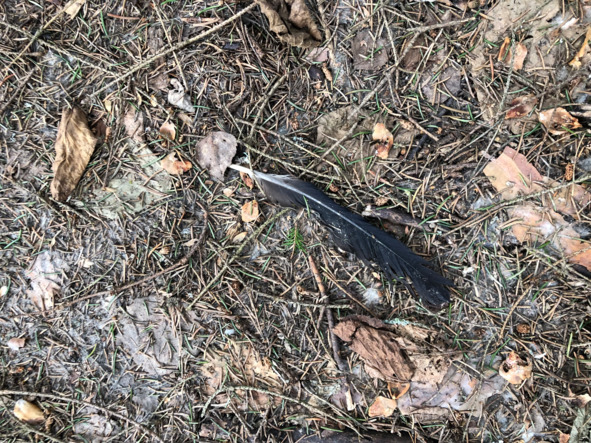 Пауза апрельской лесной прозрачности, когда возможное исполнено, а результат ожидается. Почва в плотной ламинатной выстилке из прошлогодней листвы с крапом хвои и чешуй еловых шишек и будто бы таинственным закладным указателем из вороньего пера…