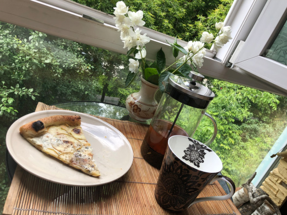 Послебанное блаженство – в заоконье композит из сливовых, яблоневых и ясеневых крон, чуть выше в муаре расстилающейся облачности стаи ласточек, чуть ниже я с кофе и ароматом дымка сигареты «Марко Поло», погруженном в сладость вкусвилловского «Муравьишкино», да еще и музыкальный микс из «Шербурских зонтиков».