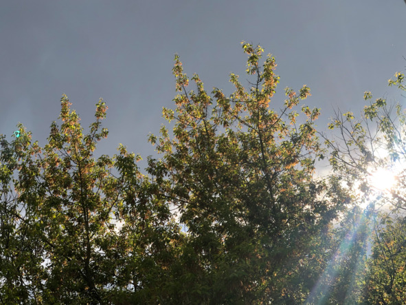 Не смотрю вниз, только вверх, где вершины ясеня мерцают свежесозданными крылатками, где творят причуды облачные громады, непредсказуемо впускающие солнечные протуберанцы и тут же их гасящие, где майский холод исполняет экспрессивные танцы зыбкой эфемерности сращивая пространство «верха».