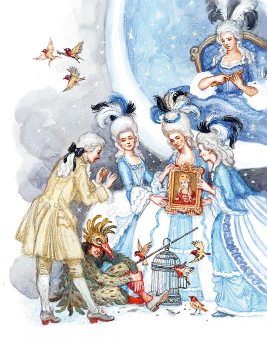 Тамино соглашается найти и спасти Памину. Три феи вручают принцу волшебную флейту, звуки которой способны укротить и усмирить самые злые силы. А что же птицелов Папагено? Он будет сопровождать принца в его путешествии и поисках. Птицелову дают музыкальные колокольчики, они тоже волшебные, как и флейта, и защитят Папагено от всех напастей.