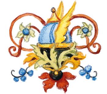 Утренняя заря освещает замок с блестящими зубцами, он стоит на высоком утёсе. Перед утёсом лежит глубокая долина, по которой течёт Рейн.