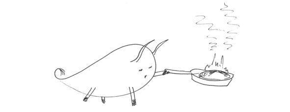 К тому времени, когда из кухни потянуло дымком, бада уже совсем утешился и даже очень удачно придумал раскрасить разводы на потолке как бы плывущими облаками. Он бросил тряпку, с беспокойством принюхался и, почуяв неладное, ринулся в кухню.