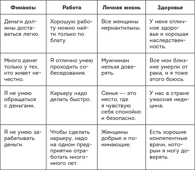 2) Выпишите все свои установки (мысли, эмоции, поведение) относительно этой сферы жизни.