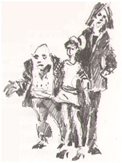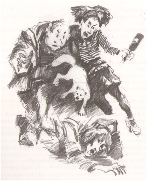 – Ты-ы! Знаешь, какой этот рыжий чёрт хитрый. Его просто так не поймать, – сказал лысый патлатому. – Я вот булыжничек прихватил, пришибу маленько, а потом поймаю.