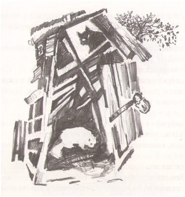 Митрофан выбрался из укрытия. Найти сарай было несложно. Снежана услышала кота, узнала его царапки, мяукнула.