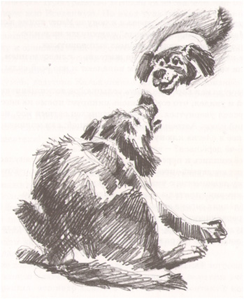 "У неё зависла программа, – понял Мика. – Ей требуется перезагрузка". И он, чтобы вызвать доверие собачки, решил стать похожим на неё. Из его шарообразного тела вытянулся собачий нос, по бокам повисли уши, сзади появился взлохмаченный хвост, а снизу четыре лапы.