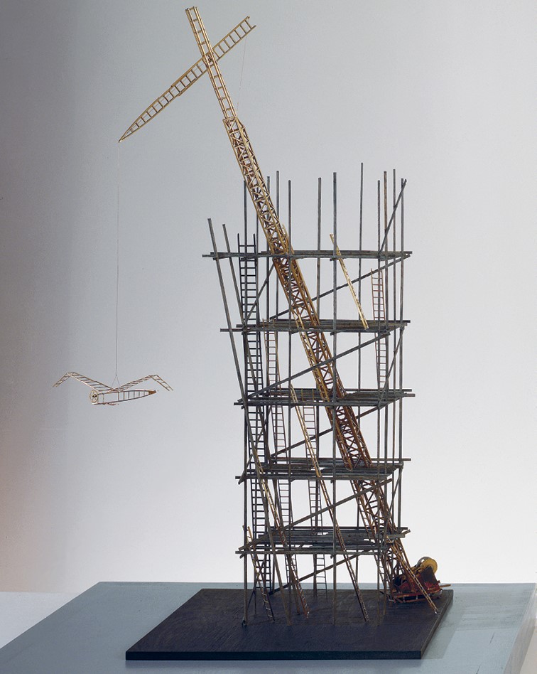 Бельгийско-датский художник Карстен Хеллер (Carsten Höller, р. 1961), видимо, неплохо осведомлен о жизни летающих существ – по образованию он энтомолог. Но Карстен Хеллер ушел из науки в искусство, потому что в науке, как он полагает, не осталось ничего непознанного, мир более или менее открыт. А в искусстве по-прежнему полно тайн. В 2001 году Карстен Хеллер сделал оммаж «Летающему городу» Георгия Крутикова. Художника завораживает то, что русский авангардист никаким образом не объяснял, как именно его город должен летать с технической точки зрения, – это осталось абсолютной тайной. Но Хеллер и не пытается разгадать или домыслить эту тайну, приблизить будущее – для него будущее прекрасно не тем, что оно может быть лучше настоящего, а тем, что мы абсолютно ничего о нем не знаем. Он превращает «Летающий город» в подобие люстры, или в рисунок на фарфоровых тарелках. Нам приходится довольствоваться только сувенирами так и не реализованной утопии. Полеты занимают Карстена Хеллера не как способ перемещения, а как ощущение. В 1996 году он создал «Машину для полетов» (Flying Machine) для проекта, посвященного счастью. Ведь человечество мечтало о полетах не только как о самом быстром способе путешествий, но и как об эйфорическом опыте.