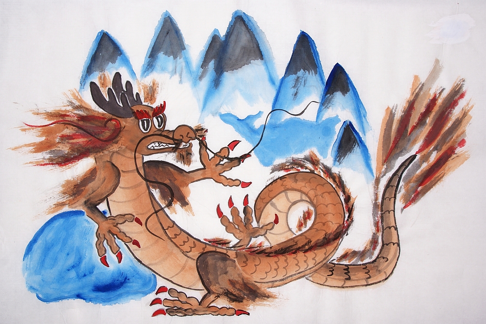 На один такой хвост и свалился заигравшийся молодой дракон, обсыпав его снегом. Владелец хвоста, дракон по имени Длинноус, аккуратно вытащил его из сугроба и строго посмотрел на Искрохвоста: