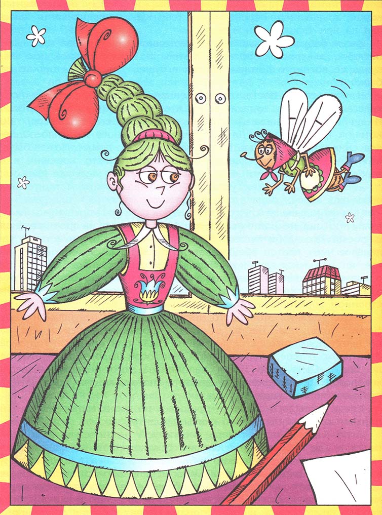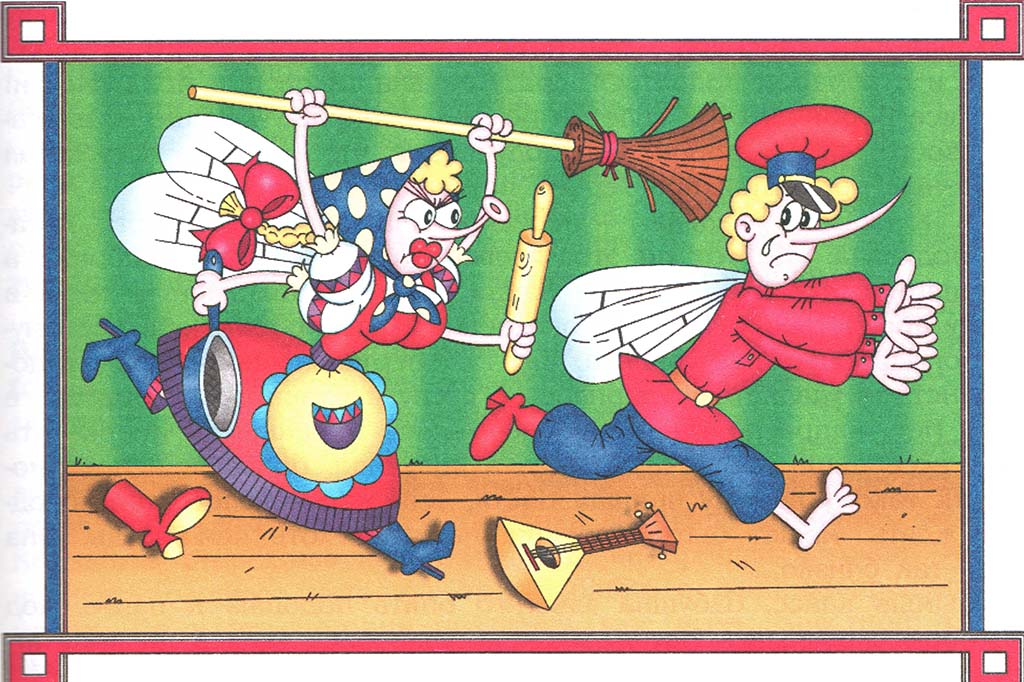 – И вот ещё что в потешке про тебя говорится, – насмешливо произнесла девочка, – “Как взял себе Мушку-невесту он, неряху, неряху, неряху… Она только по сеничкам летает, бедного Комарика забижает…” Но лучше бы она этого не произносила! Муха аж взвилась от возмущения. Критики она совсем не терпела.