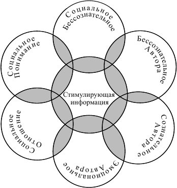 Как уже упоминалось ранее, художественный образ – полиметрическое, многокомпонентное психическое образование, элементы которого продуцируются в сложнейших процессах творческого взаимодействия социального, культурного и личностного. Большинство исследователей выделяют два «полюса» пространства, в котором это происходит: социальный и личностный. Есть также мнение о разделении основной области формирования художественного образа на эмоциональный, когнитивный и трансцендентный уровни. В данной модели, которая имеет больше технологический, чем теоретический характер, мы попытались объединить эти два мнения, предположив, что в процессе взаимодействия информационного стимула с перечисленными уровнями психического продуцируются многочисленные компоненты умозрительного художественного образа, который, в последствии, переконструируется, переоформляется в материальной модели, т. е. художественном произведении.