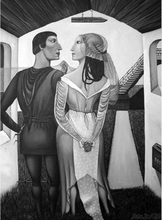 Как видим – очень разные формы может приобретать сомнение, но нельзя не отметить, что во всех картинах есть символы двойственности. В первой – направления роста, развития. Во второй – мужское и женское мнения. В третьей – целостности и фрагментарности, статики и динамики. Допускаю, что кто-то увидит совсем иное и у него сложится свое представление о природе сомнения. Такова сущность художественного и результаты феномена узнавания. Тем не менее констатируем как критерий сомнения – двойственность. Теперь – к изысканиям психологов. Сомнение рассматривается как элемент пространства (в «полевой» теории – поля), которое создается между верой и скептицизмом. Оно и заполняет эмоционально (как переживание) это поле. Второй подход – сомнение – эмоциональное переживание трудности выбора. Третий – затруднение при выяснении вопроса об истинности или ложности чего-либо. Естественно, что сомнение трактуется и как акт мышления, точнее, размышления, вызванного необходимостью преодолеть возникшие противоречия, колебания. Неправда ли весьма похоже на определение природы внутриличностного конфликта? В частности, когнитивного? В основе как сомнения, так и конфликта лежат опасение за неправильный выбор, ощущение угрозы своим ценностям. И вполне непротиворечиво на этой базе появляется тревога, которую можно трактовать как выражение сомнения на эмоциональном уровне. А действительно ли это соответствует истине попробуем определить с помощью художественных работ. Сравните картины под названием «Сомнение» с картинами под названием «Тревога». Не анализируя цвета или символы как психолог-диагност, а воспринимая их как сопереживающий зритель. Попробуйте мысленно и больше эмоционально, по ощущениям, разместиться в пространстве картины в качестве какого-то близкого для вас и вашего состояния на данный момент персонажа (элемента) картины. Попробуйте не смотреть на нее «снаружи», а воспринимать ее как бы «изнутри», как ее персонаж.