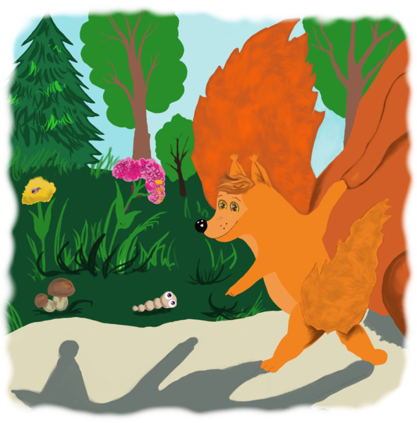 «Это хорошо, что у меня есть своя тень! И все—таки она какая—то особенная. Вот у мамы тень такая большая и медленная, а моя быстрая и ловкая. Может, поэтому она выбрала меня?» – и белочка, радостно засмеявшись, гордая, побежала вслед за мамой.