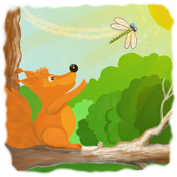 Когда Веснушка подросла, она сначала научилась ходить, а потом прыгать. Мама и брат выводили ее гулять. Гулять белочке очень нравилось. Ведь вокруг столько всего интересного! Огромные деревья с раскидистыми ветками, необъятные поляны и… серебристые стрекозки, которые так чудно летают, легко меняя направление, а также легкокрылые бабочки ярких расцветок. И еще много—много всего! Каждый день радовал Веснушку чем—то новым.
