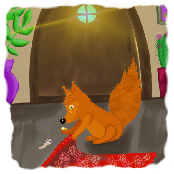 И тут белочка увидела, что в прихожей что—то блестит. О чудо! Это была недавно утерянная мамой сережка.