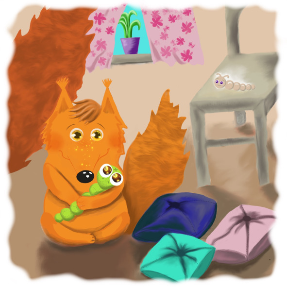 Белочка нежно взяла в лапки свою гусеницу, прижала ее к себе и зашептала: