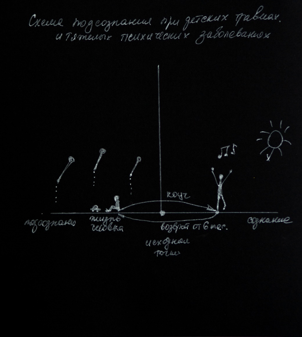 Крайняя точка бессознательного – это состояние аффекта. То состояние, при котором человек не понимает, что происходит, а им управляют "дьявольские силы" или бессознательное. Он не может объяснить, почему он делает те или иные вещи, им управляет автоматическая программа разрушения или внутренний ад.
