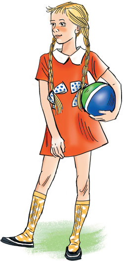 Я слоня́лась по до́му и не находи́ла себе́ ме́ста. Что́бы не́ было так ску́чно, я укра́дкой, из-за занаве́ски, смотре́ла, как Лю́ська игра́ет в лапту́ с Па́вликом, Пе́тькой и бра́тьями Карма́новыми.