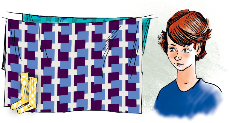«Ещё я стира́ю пла́тья, своё и ма́мино, салфе́тки и покрыва́ло».