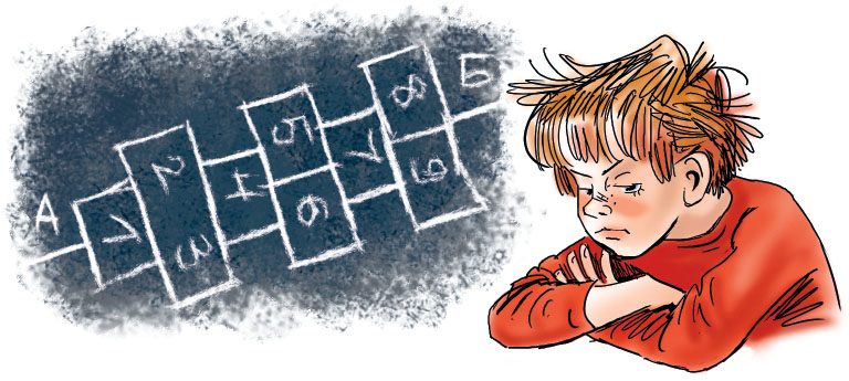 – Ду́май, голова́. Ду́май хороше́нько… «Из пу́нкта А в пункт Б вы́шли два пешехо́да…» Голова́, ты почему́ не ду́маешь? Ну, голова́, ну, ду́май, пожа́луйста! Ну что тебе́ сто́ит!