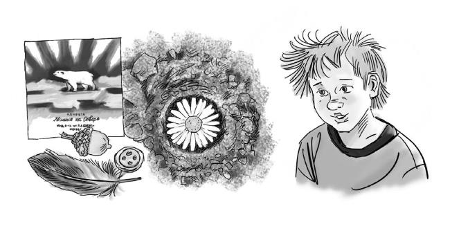 Возьмите чистое стёклышко и выройте в земле ямку. Положите в ямку фантик от конфеты, а на фантик – всё, что у вас есть красивого.