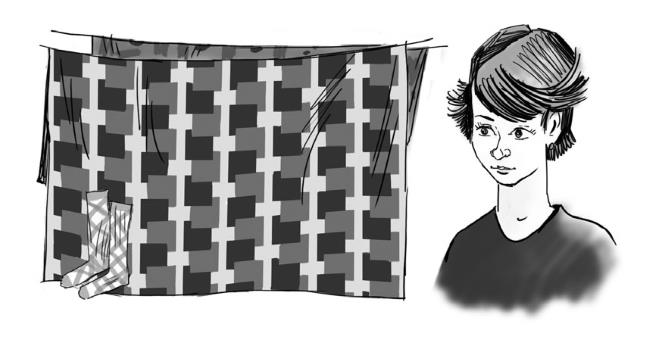 Ну, это было хуже всего! Пока я натягивала на верёвку один кусок занавески, другой сваливался на пол. И в конце концов вся занавеска упала на пол, а я упала на неё с табуретки.