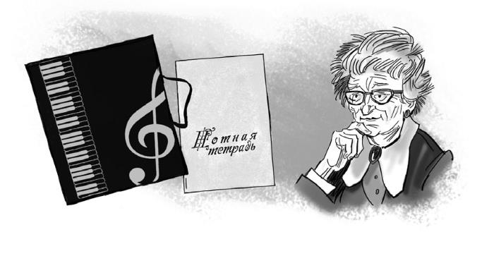 Я развернула ноты и стала по нотам играть «Как на тоненький ледок выпал беленький снежок».