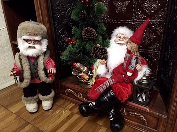 Санта заулыбался, лукаво посмотрел на Домового – круглые очки, белая борода и усы, короткая куртка, черные сапоги с пряжками, толстячок – ну очень похож на нашего Деда Мороза.