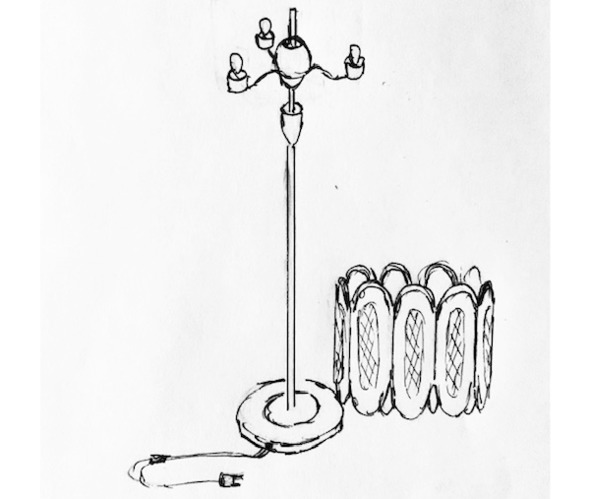 И вот однажды поздним вечером приехали чужие люди, вошли в квартиру, собрали вещи, женщина подошла к торшеру, повертела его, понаклоняла, попыталась поднять, подумала: «Тяжелый какой». Открутила ему ногу, сняла и разобрала абажур (Рис.4.1), завернула всё в пакет. Чужие люди погрузили его в багажник машины и увезли. Очухался торшер и пришел в себя в незнакомой квартире уже собранным, но без головы, стоящим около окна.