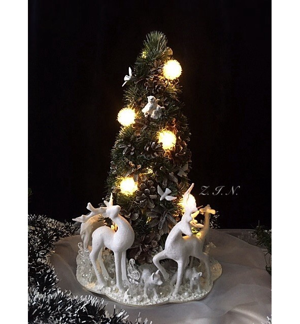Тут он обернулся и увидел на столе изящный и нарядный светильник, сделанный его Хозяйкой в виде новогодней елочки: «А вот эта елочка много лет будет служить и радовать».