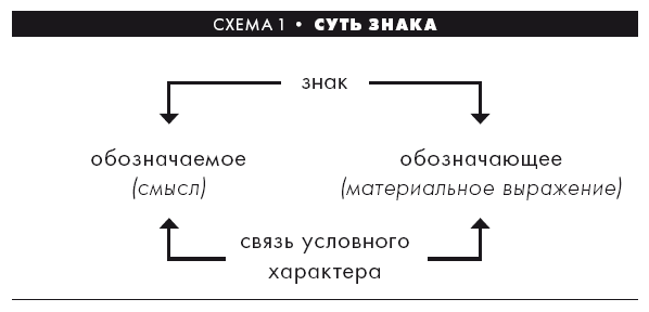 Единицы языка – это знаки, а любой знак имеет, во‑первых, обозначаемое (смысл, значение), во‑вторых, обозначающее (материальную составляющую, которую воспринимают органы чувств человека), а в‑третьих, условную (то есть не естественную, не предусмотренную природой) связь между обозначающим и обозначаемым (СХЕМА 1).