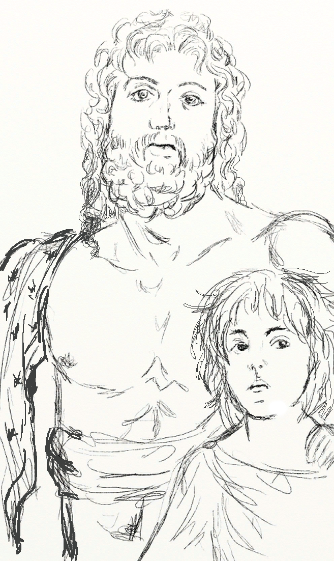 К нему подошёл сынишка, самый младший. Золотистые волосёнки ореолом оттеняли наивное детское личико с огромными глазищами. Такие же огромные глаза были у жены Аминтора, уже покойной. Нахохленный, встрёпанный малыш напоминал разбуженного совёнка.