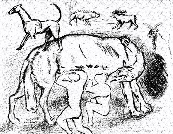 Рассматривая эту проблему, я не смогу не коснуться вопроса о приручении собак человеком, ибо в древнем мире вопрос о взаимоотношениях с “псовыми“ был неоднозначен. Только племена, чья зооморфная особенность позволяла с религиозной точки зрения общение с собаками, могли заняться их приручением. И ничего удивительного нет в том, что псовые были их тотемом.