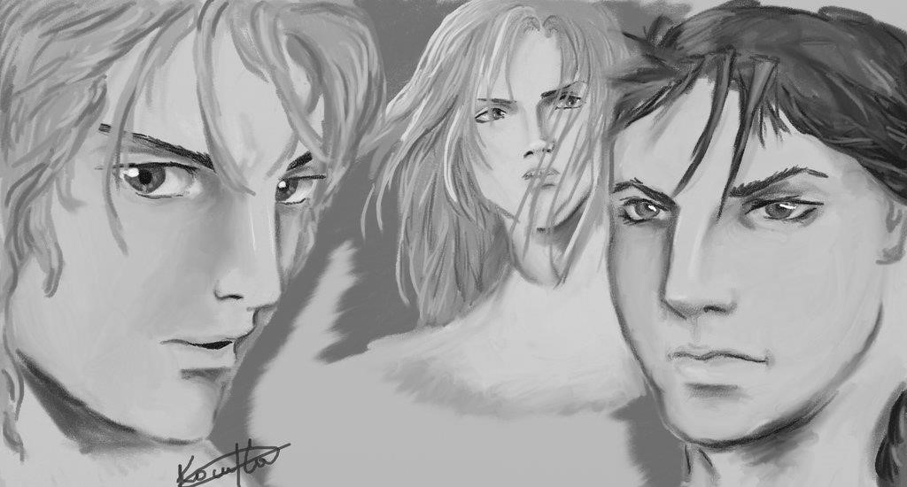 Мужчина – с ухоженной окладистой бородой и русыми волосами, рассыпанными по плащу и перехваченными обручем. Явно крупный пост занимает. Лицо у него красивое, правильное, даже можно сказать изящное, но при этом мужественное и решительное. Глубоко посаженные глаза умные, насыщенно серого цвета. Взгляд смелый, цепкий, что выдаёт в нём воина, даже стратега, смелого, прямолинейного. Тёмные, соболиные брови хмурились, во время разговора, выражая задумчивость и неодобрение. И отец разговаривает с ним как с равным, значит тоже правитель – решил Ясон.
