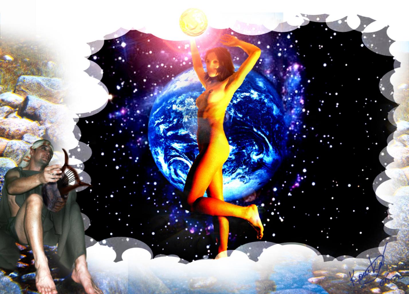 В третьем же Мире, между двух вод, Она начала свой одинокий танец. Над волнами Моря (Понта) неслась Её одинокая фигура к югу.