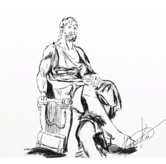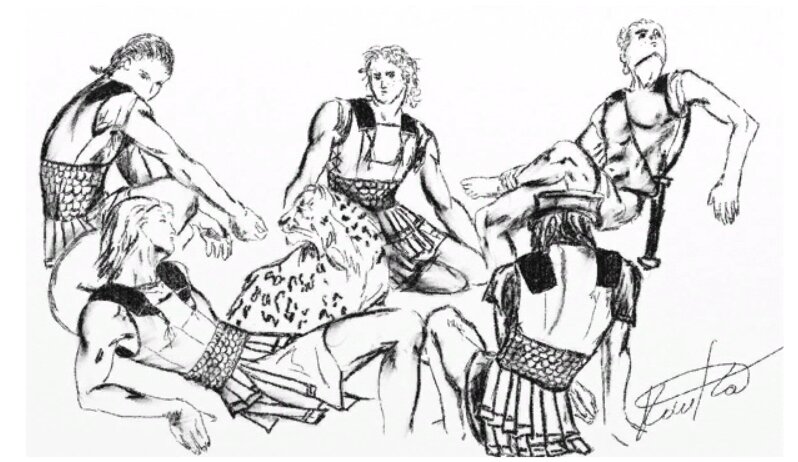 – Ну, что байки травите? – глаза бадри хитро залучились. Он взял кифару и начал медленно перебирать струны. А потом полился голос. Не громкий, но сильный, берущий за душу, окрашивающий мир новыми красками. И картины древнего мира в пламени костра начали оживать. Песнь струилась рекой, как жемчужины, нанизывая повествование.