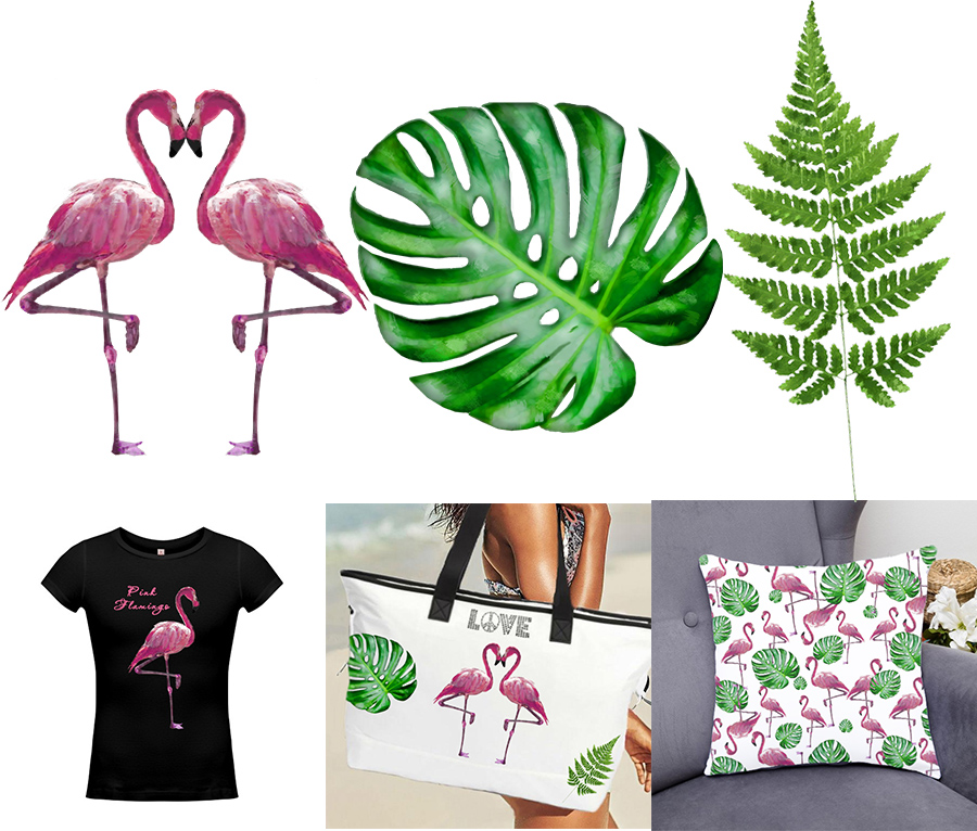 Рис. 4. Клипарт фламинго и листья. Автор Ирина Никулина