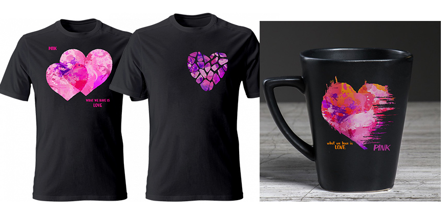Рис. 6. Сублимации на майках и кружке, созданы Ириной Никулиной