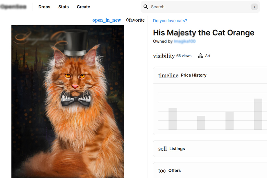 Рис. 9. Продажа нфт-токена на сайте Опенсеа. Арт создан Ириной Никулиной