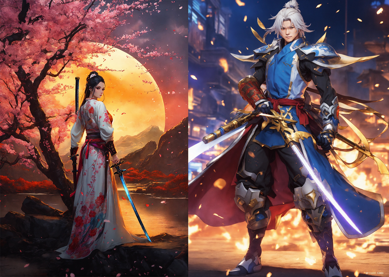 Характерными особенностями жанра являются образы героев, одетых в длинные ниспадающие одежды в старинном стиле, наличие мечей и другого оружия, длинные волосы, красивые украшения и в целом детальность изображения и красивые пейзажи (для мультфильмов).