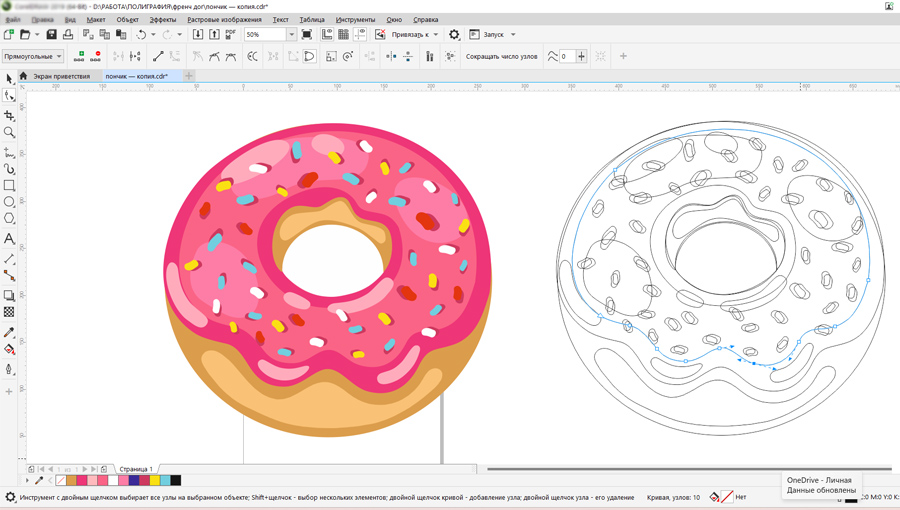 Рис. 4. Рисунок пончика в векторной программе CorelDRAW