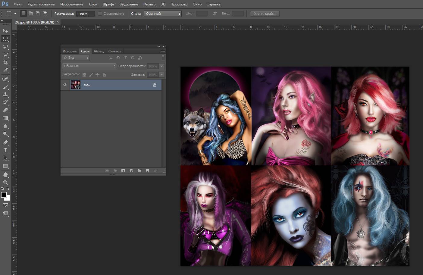 Рис. 1. Интерфейс программы Photoshop с цифровыми артами (созданы автором книги в этой программе)