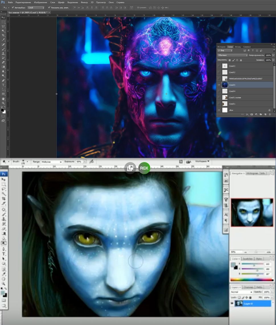 Рис. 5. Превращение фотографии в персонажа фильма в программе Photoshop