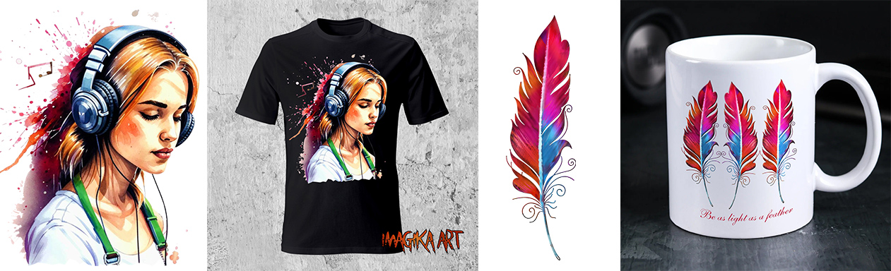 Рис. 9. Растровый клипарт и его визуализация на предмете, картинки выполнены автором учебника