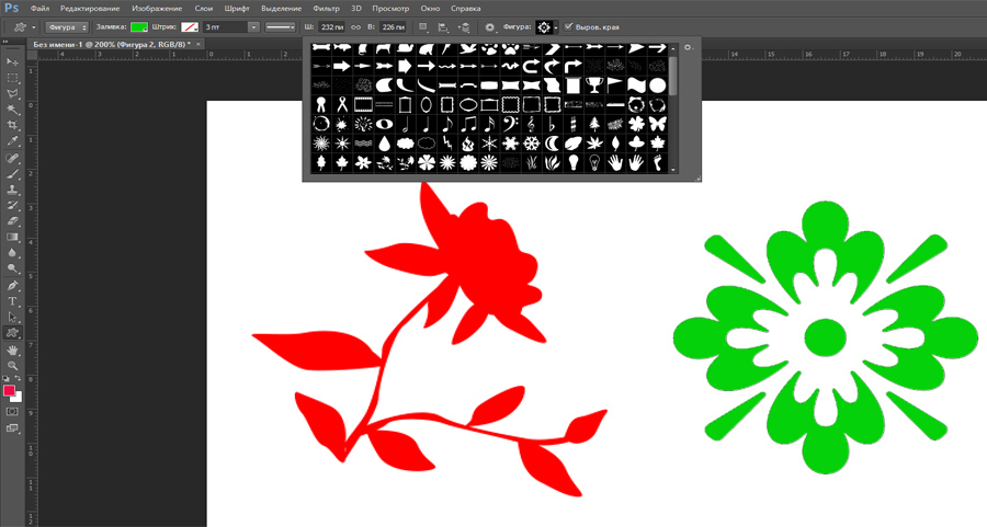 Рис. 10. Редактируемые векторные фигуры в программе Photoshop