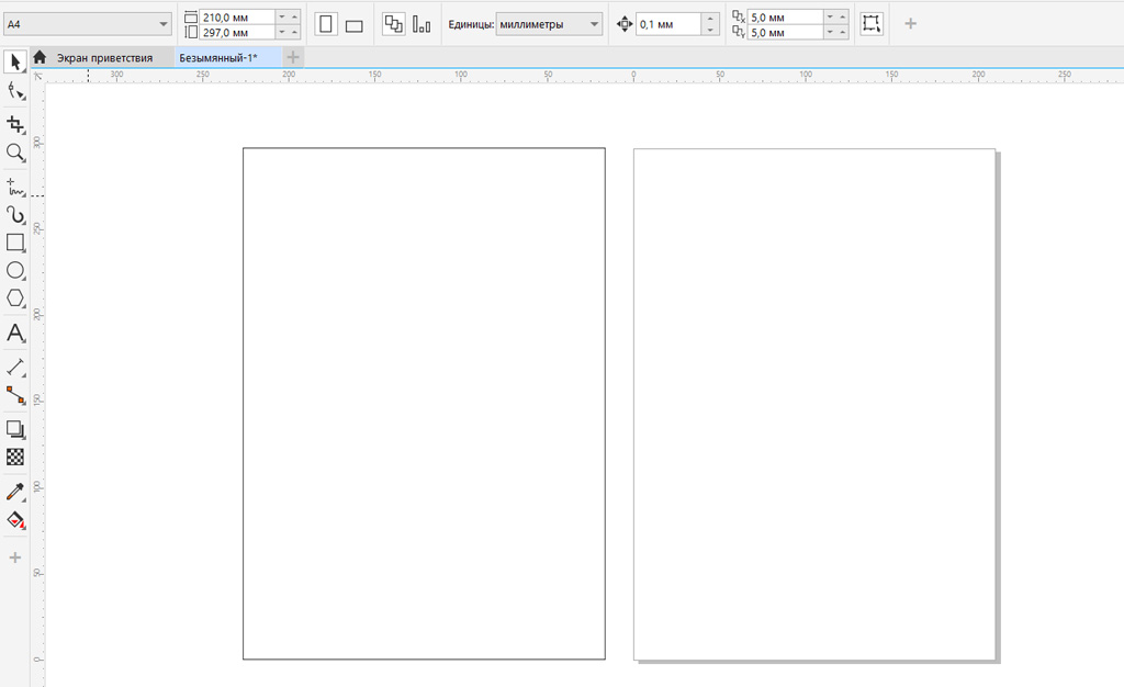 Рис. 13. Лист для печати. В отличие от объектов программы этот прямоугольник имеет тень (на иллюстрации справа, слева обычный объект прямоугольник).
