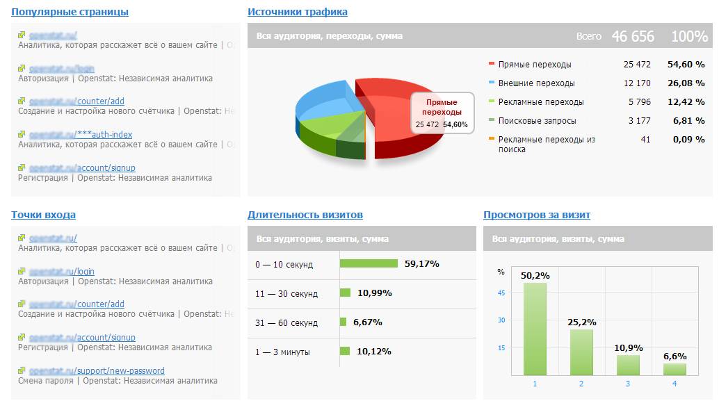 – Расширенная статистика сайта (количество входящего трафика, его источники, ключевые слова, нагрузка на сайт и так далее).