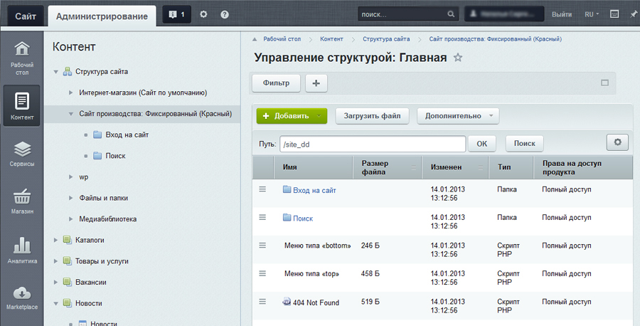Рис. 22. Редактирование страницы в 1С-Битрикс в административной части сайта