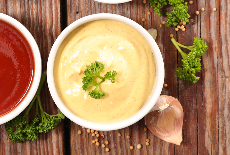 Яйца выбираем свежие. В разные емкости поместить желтки и белки. Взболтать желтки с горчицей.