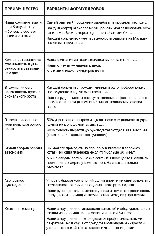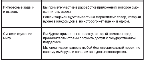 Итак, мы выяснили, кто нам нужен, какие у них потребности и страхи, где они бывают и на что обращают внимание при поиске работы. Исходя из этого, формируем наше уникальное ценностное предложение для сотрудников и по каждому пункту формулируем конкретное, четкое предложение. Облекайте цифры в образы и маркеры успеха.